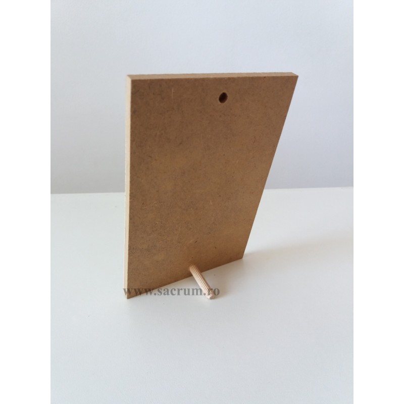 Icoana pe lemn cu detalii aurite si picior de sprijin din lemn