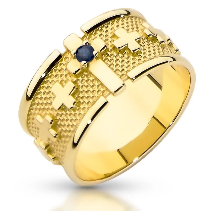 Inel rozariu (rozeta) din aur 14K cu safir natural la cruciulita un design unic si aspect nobil