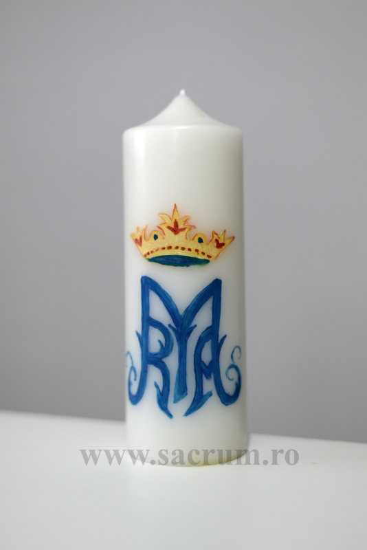 Lumanare din ceara pictata cu simboluri mariane Dimensiune lumanare  25 x 7 cm Va rugam sa alegeti dimensiunea dorita