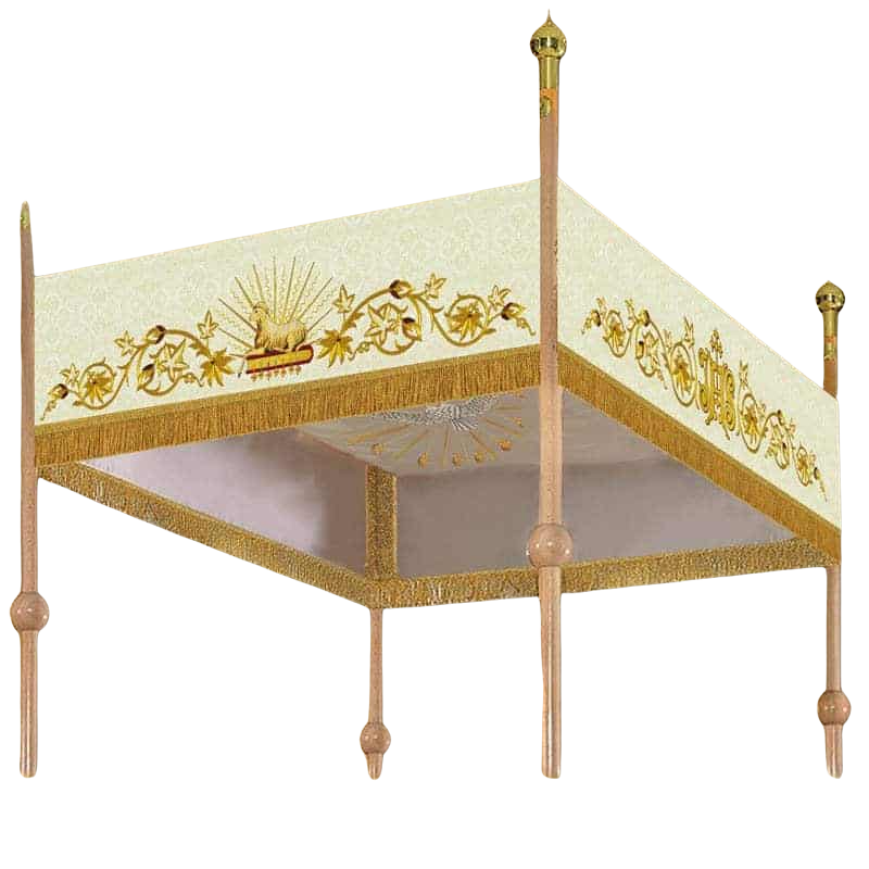 Baldachin din tesatura de inalta calitate brodat cu insemne liturgice pe cele patru laturi Pe interior este brodat simbolul Duhului