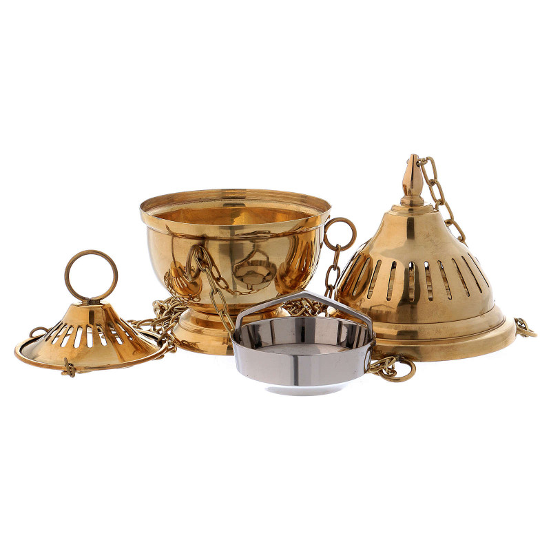 Cadelnita din alama aurita, inaltime 17 cm Diametru: 10 cm Lungime lant: 84 cm