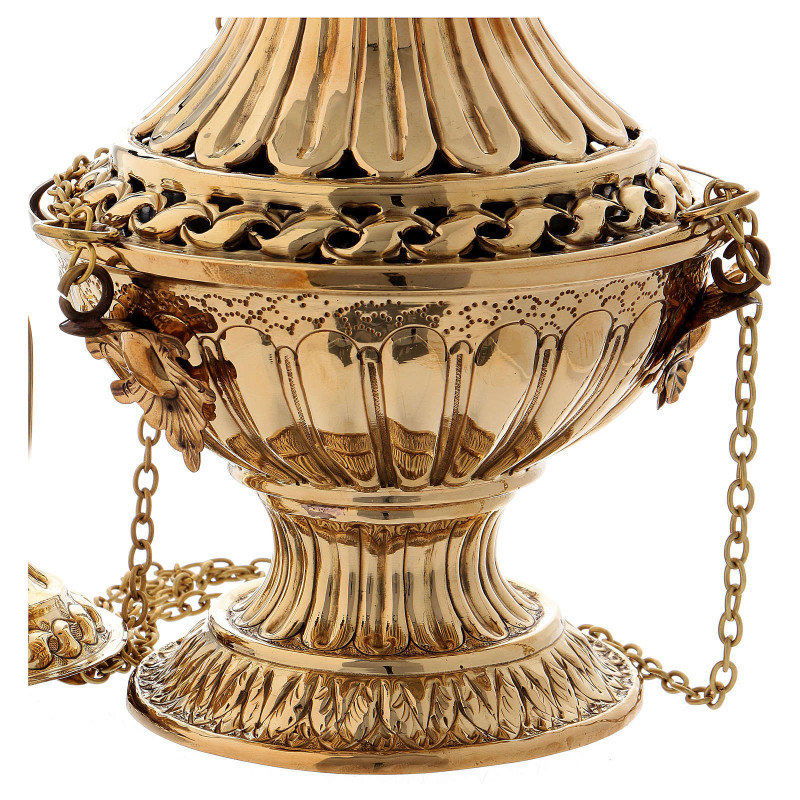 Cadelnita din alama aurita, inaltime 10 cm Diametru: 6 cm Lungime lant: 40 cm