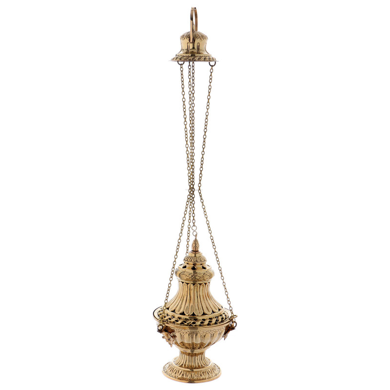 Cadelnita din alama aurita, inaltime 14 cm Diametru: 8 cm Lungime lant: 84 cm