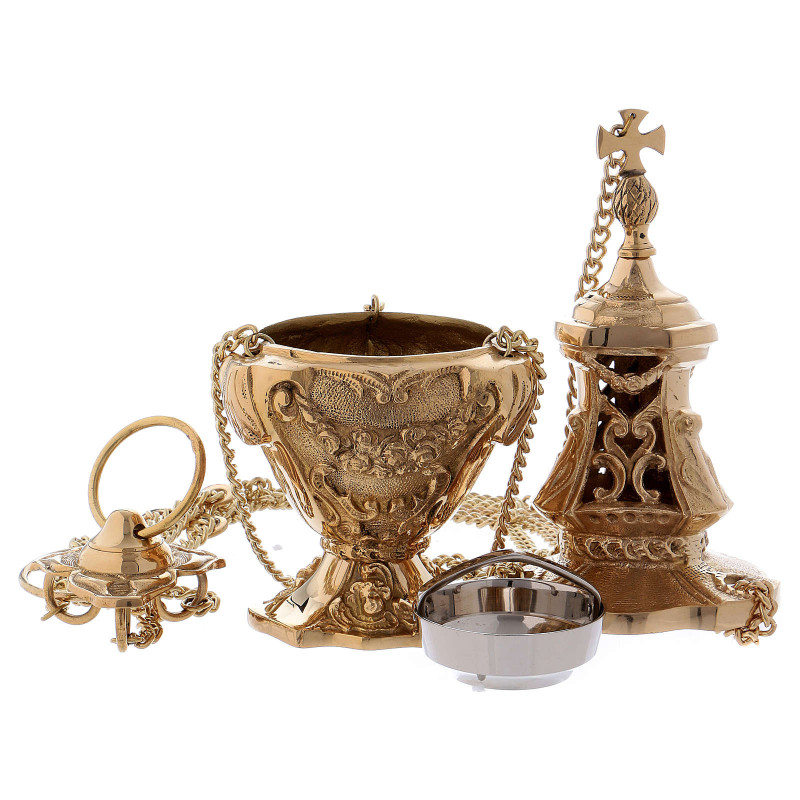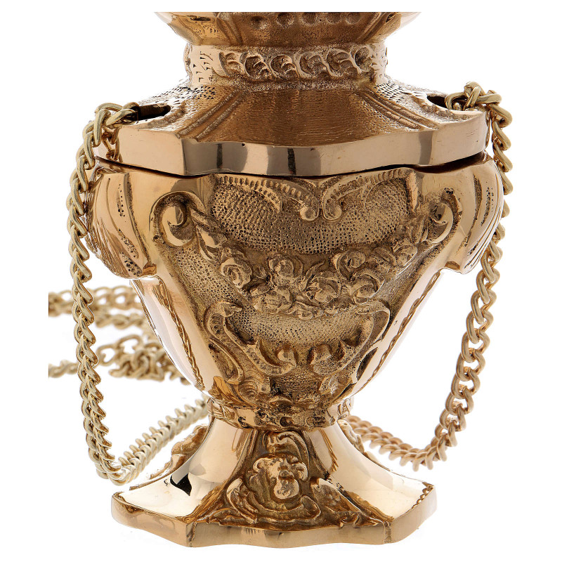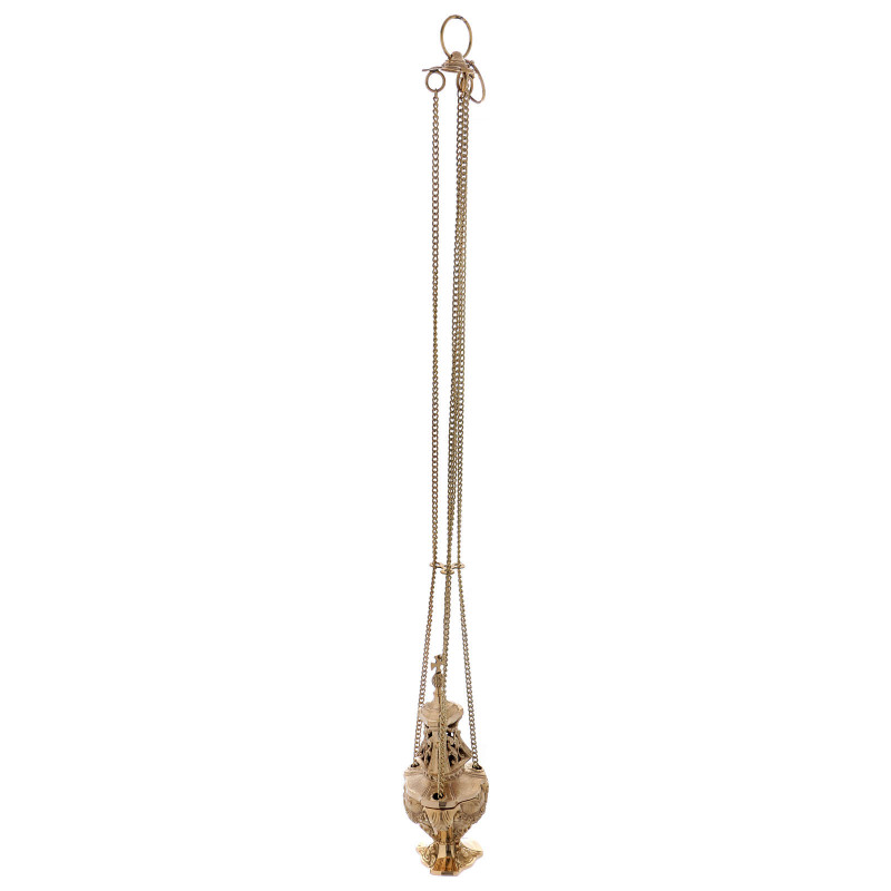 Cadelnita din alama aurita, inaltime 17 cm Diametru: 10 cm Lungime lant: 84 cm