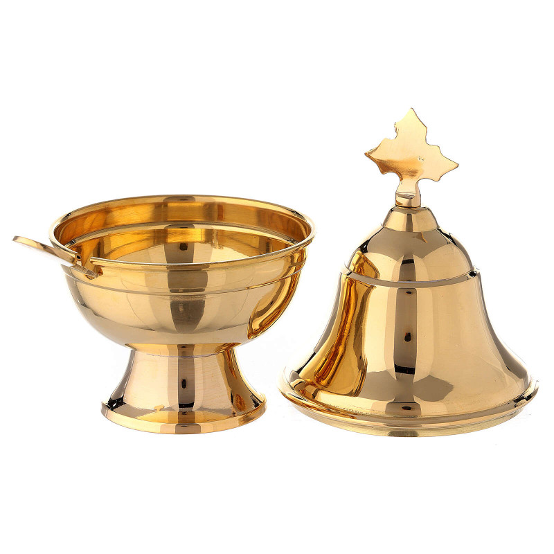 Navicela (suport pentru tamaie) din alama aurita, lucrata manual si lingurita inclusa