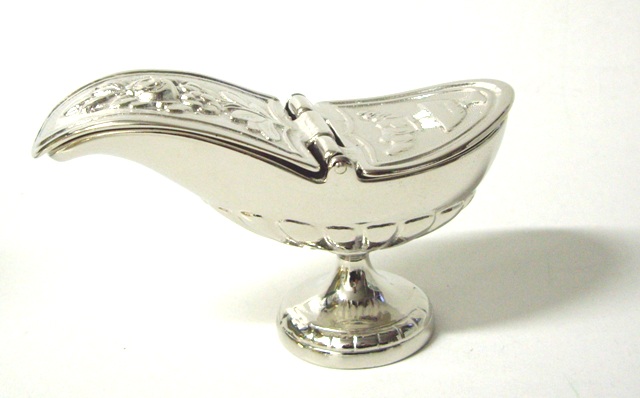 Navicela din metal argintat, eleganta, potrivita pentru orice biserica.
