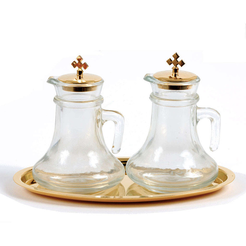 Paharute liturgice simple, din sticla. Capacelele sunt din metal aurit. Capacitate 100 ml. Dimensiuni: 20 x 10 cm.