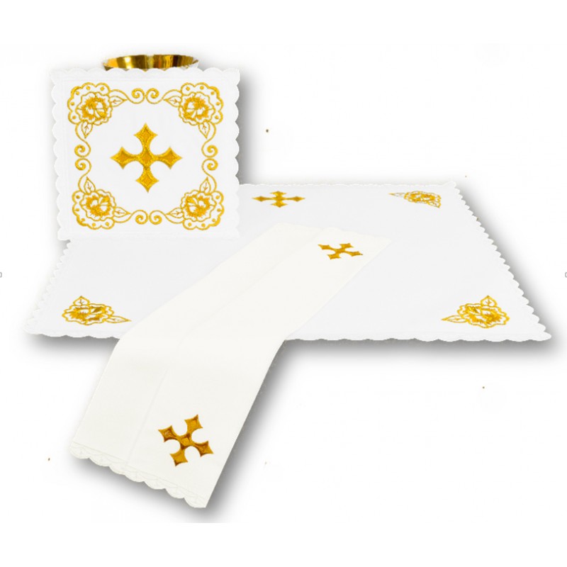 Set pentru potir brodat: – purificator  – 46 x 38 cm – corporal – 38 x 38 cm – manutergiu
