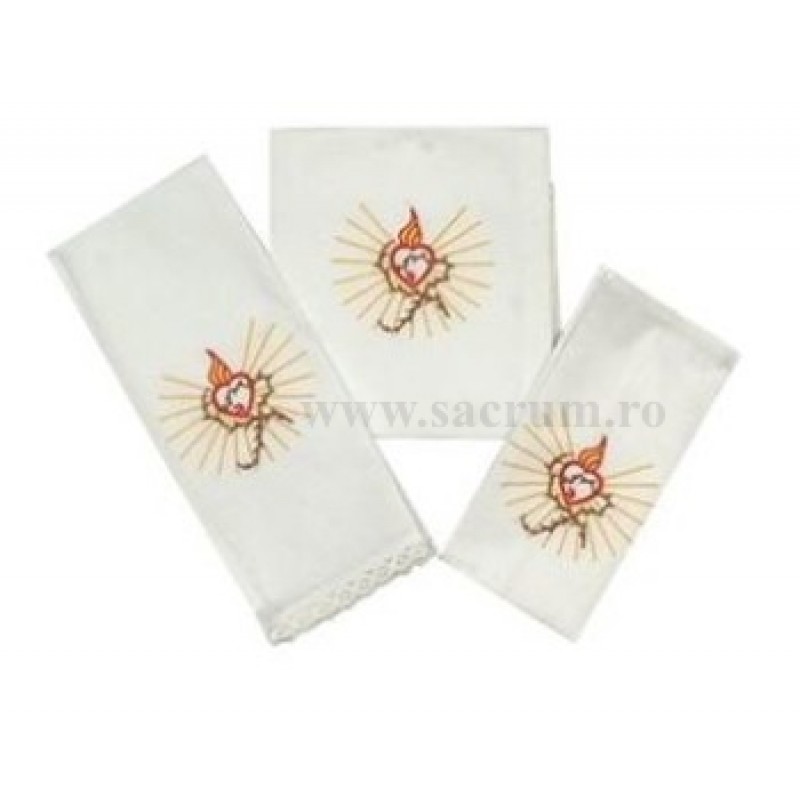 Set pentru potir brodat: – purificator  – 46 x 38 cm – corporal – 38 x 38 cm – manutergiu