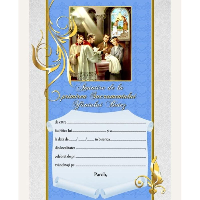 Amintire de la primirea Sacramentului Sf?ntului Botez, in formatul 30 x 21 cm