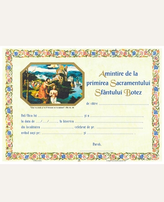 Amintire de la primirea Sacramentului Sf?ntului Botez, in formatul 30 x 21 cm
