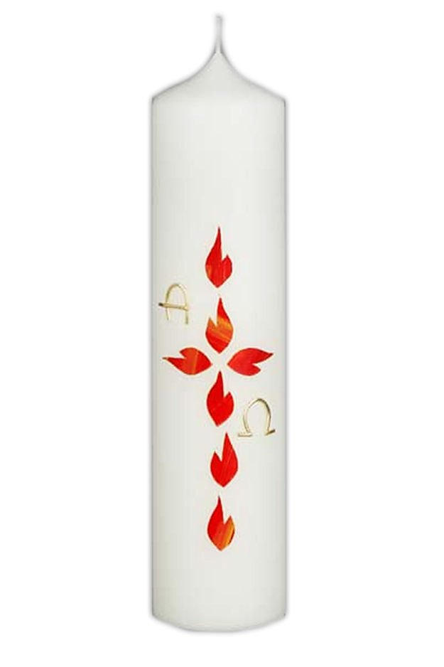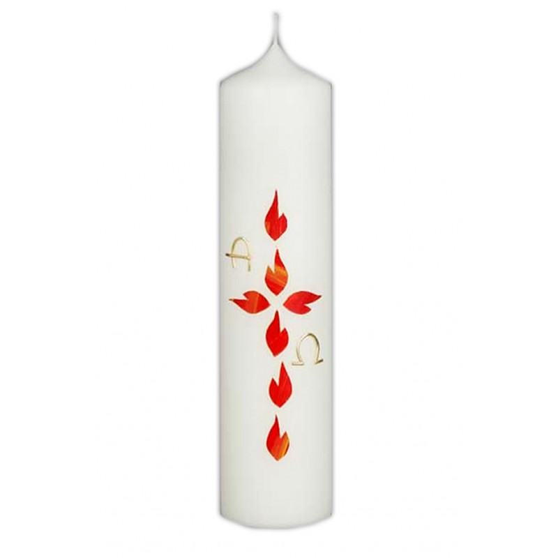 Lumanare din ceara pentru Mir sau pentru altar cu simboluri ale Duhului Sfant Dimensiuni:  inaltime 25 cm,  diametru 7 cm Va rugam