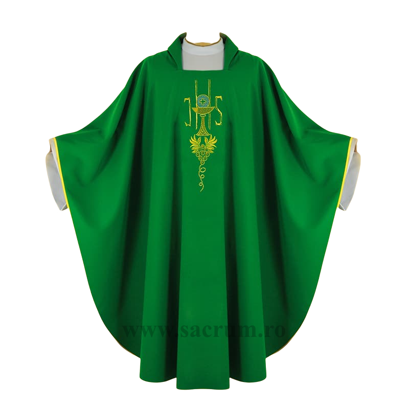 Ornat confectionat din tesatura de inalta calitate, culoare verde, brodat cu simboluri liturgice