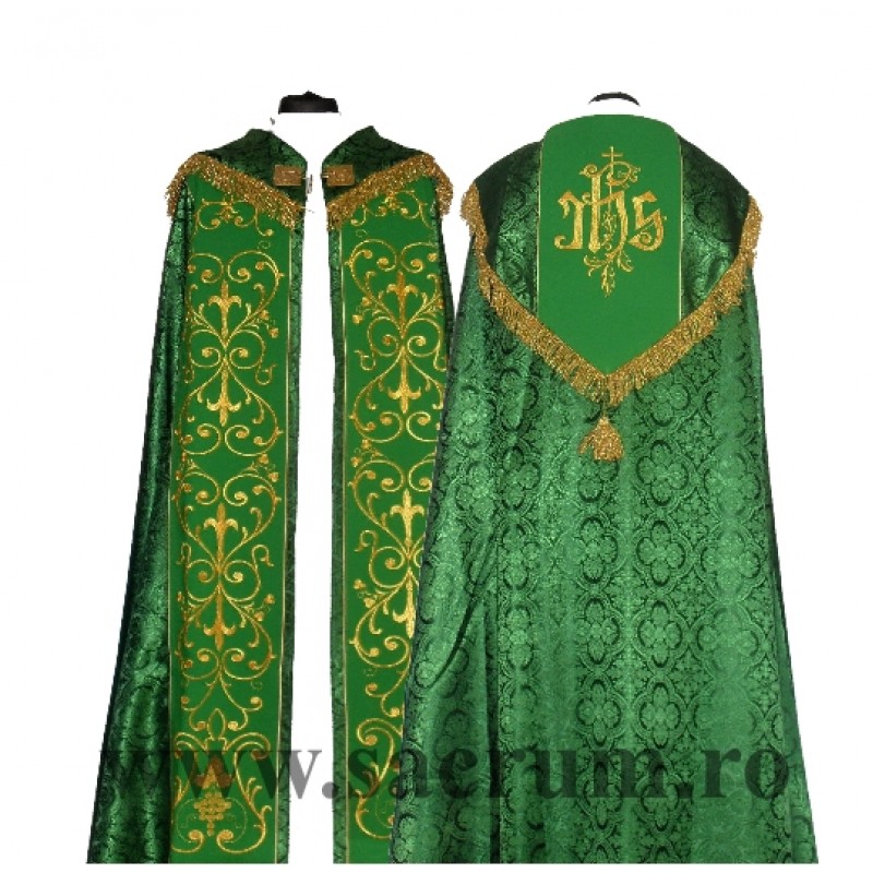 Pluvial verde brodat atat pe guler cat si in fata cu fir auriu. Maretial brocart, stola inclusa