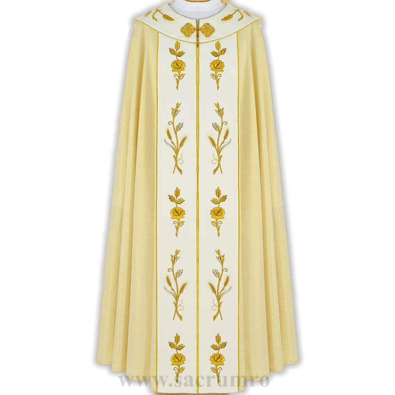 Pluvial brodat pe tesatura aurie de ?nalt? calitate. Tesatura este u?oar?, aerisit? ?i pl?cut? la atingere.